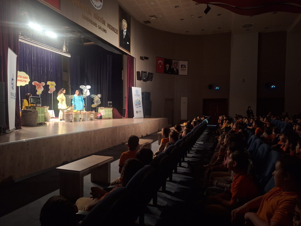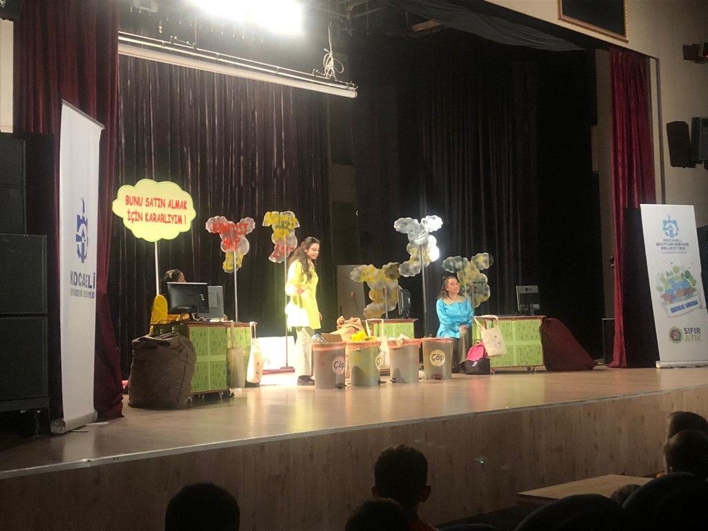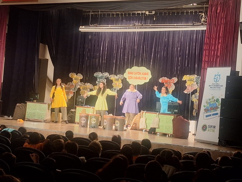 Kocaeli Büyükşehir Belediyesi tarafından hazırlanan "Çöpe Hiç At, Sıfır Olsun” adlı Sıfır Atık temalı tiyatro gösterisine okulumuz 3. ve 4. sınıf öğrencileriyle birlikte katıldık. Eğlenceli sahneleri ve öğretici içeriğiyle dikkat çeken oyun, öğrencilerimize geri dönüşümün ve çevreyi korumanın önemini keyifli bir şekilde anlattı. Renkli karakterler ve etkileyici diyaloglar sayesinde öğrencilerimiz hem eğlendiler hem de çevre bilincini pekiştirdiler.