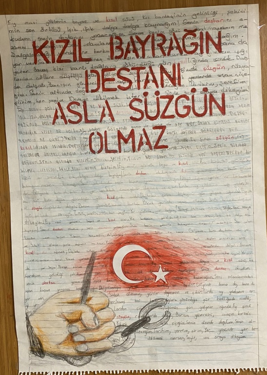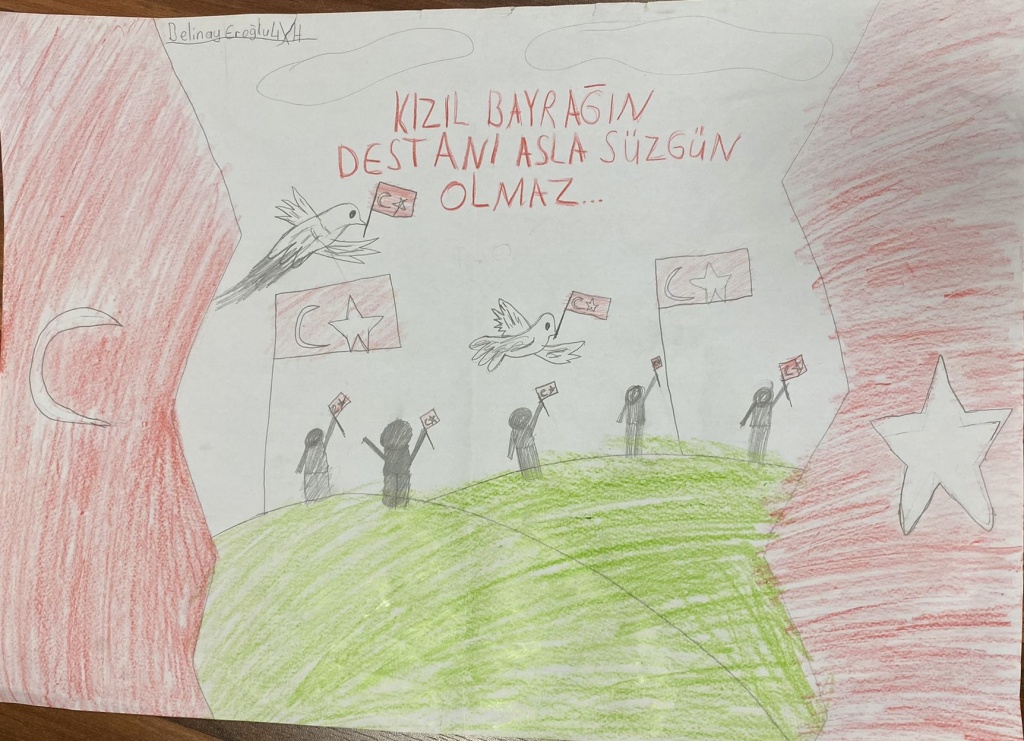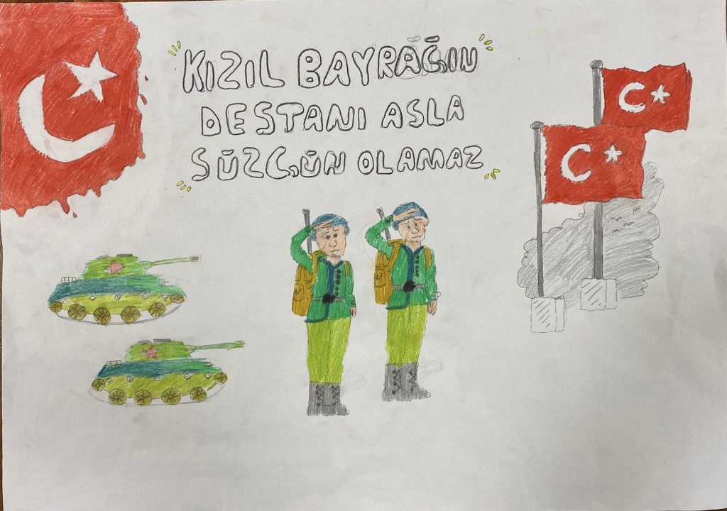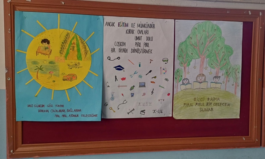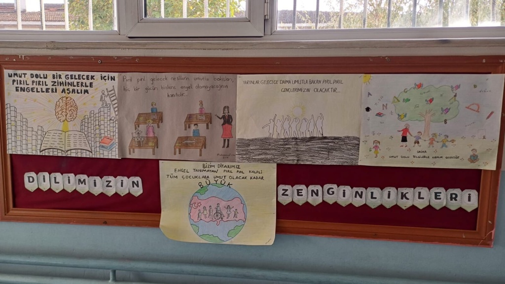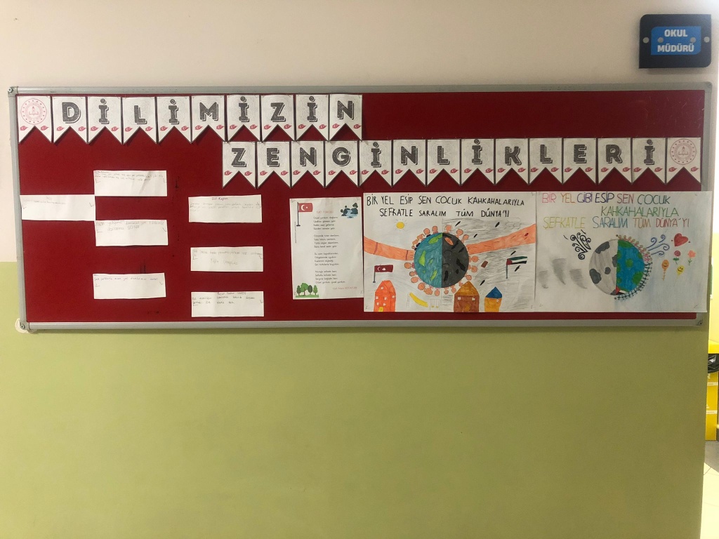 Dilimizin zenginlikleri projesi kapsamında okulumuzda yapılan cümle/afiş tasarımı yarışmasında öğrencilerimizin yapmış olduğu övünç duyduğuımuz eserler çeşitli mekanlarda sergilendi. Gayret gösteren, katkı sunan öğrencilerimize, öğretmenlerimize emekleri için teşekkür ediyoruz. Hazırlanan eserler, yarışmaya katılan afişler ve panolardan kareler takdirlerinize sunulmuştur.